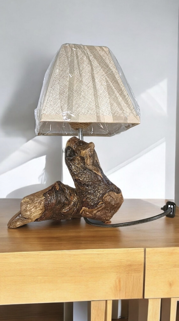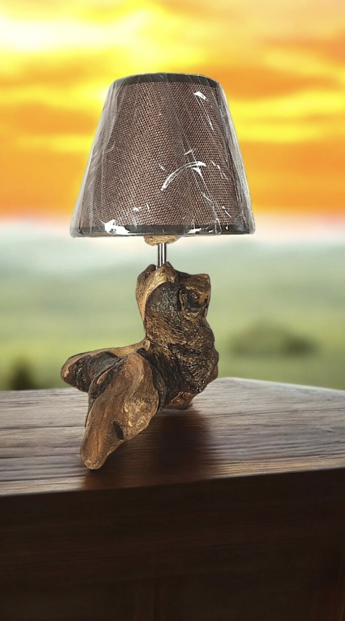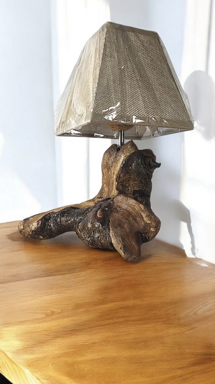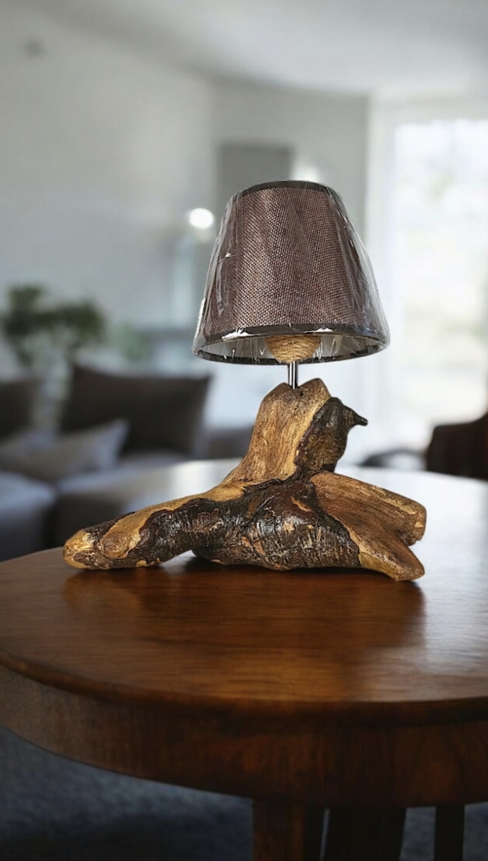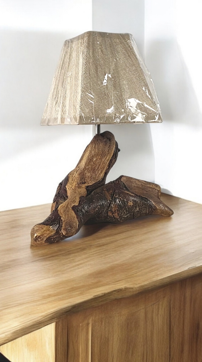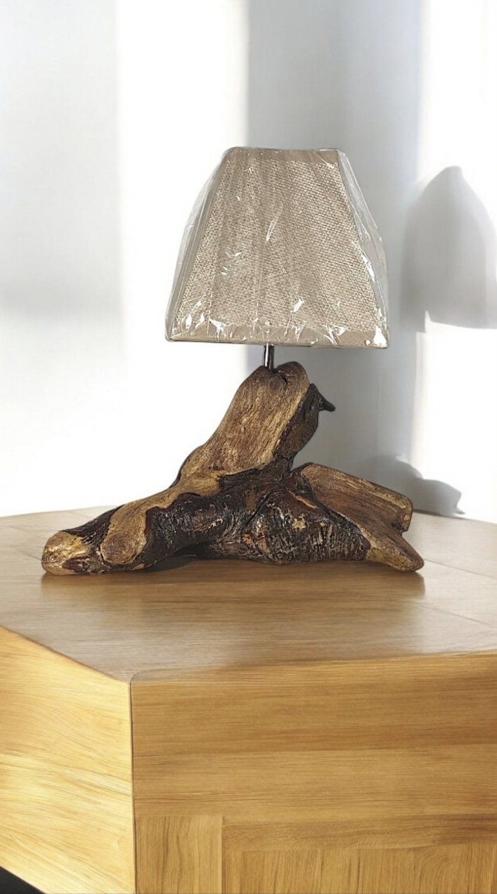 Lámpara de sobremesa/noche, de 30 cm de altura, fabricada artesanalmente con madera natural